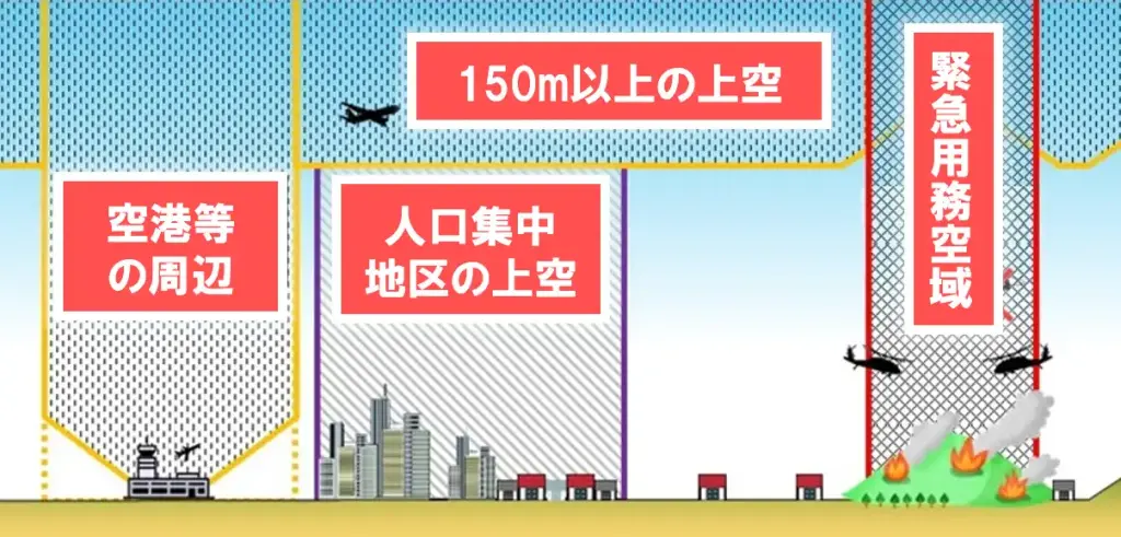 人がたくさん住んでるエリアでは、許可なしで飛ばしちゃダメなんだよ。