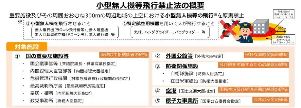 - 国会議事堂や防衛施設、原発など重要施設周辺